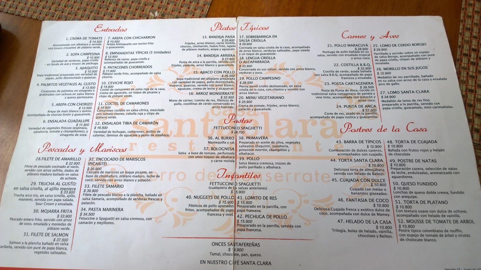 Im Restaurant "Casa Santa Clara" hat uns Jürgen beraten zwecks Essen und Trinken, z.B. ein Getränk, das wir bis jetzt noch nicht hatten, Lulada aus einer uns völlig unbekannten Frucht namens Lulo, die zerstoßen wird, mit heißem Wasser aufgegossen, ziehen lassen und dann sehr erfrischend und säuerlich ist, lecker! Dazu gab es einmal eine Suppe mit Hühnchenfleisch (Ajiaco con Pollo) und eine Regenbogenforelle, sowie für ihn selbst Chorizo mit Arepa, wovon wir auch kosten durften.